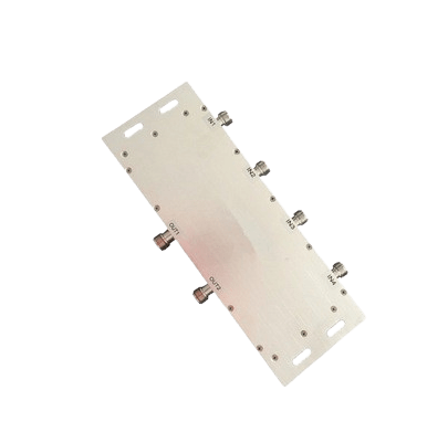 A 4-to-2 combiner that merges four RF signals into two outputs. It operates in the 698-2700 MHz range and is ideal for signal boosting.