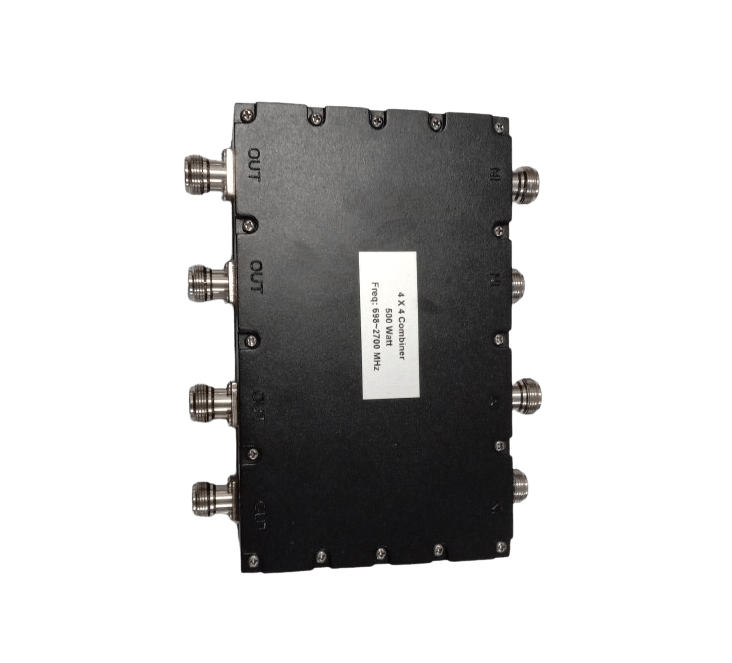 This 4-to-4 combiner is a professional-grade component designed to efficiently merge four separate RF signals into four output paths. It operates over a wide frequency range of 698-2700 MHz, making it suitable for a variety of cellular, 4G LTE, and Wi-Fi applications. This combiner is ideal for applications that require low intermodulation distortion, ensuring that the combined signal is clean and free from unwanted noise. It is an excellent choice for a variety of applications, including signal boosters, DAS (Distributed Antenna Systems), and wireless networks.