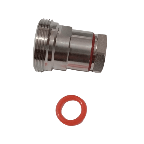 This DIN female coaxial connector is specifically designed to provide a secure and reliable termination for 1/2-inch LDF (Low-Density Foam) coaxial cable. The clamp-style termination offers a quick and straightforward installation process, eliminating the need for complex tools or soldering. This makes it an excellent choice for on-site field work where speed and efficiency are important. Despite the simple installation, the connector ensures a robust mechanical and electrical connection to the cable, minimizing signal loss and ensuring optimal performance. It is built from high-quality, corrosion-resistant materials, making it suitable for both indoor and outdoor applications in telecommunications, broadcasting, and other high-frequency systems.