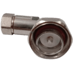 This right angle DIN male coaxial connector is engineered for use with 1/2-inch SF (Super Flexible) coaxial cable. The right angle form factor is a key feature, making it perfect for applications with limited space or for a cleaner, more organized cable routing path. The connector uses a clamp-style termination, which provides a quick and secure mechanical and electrical bond to the cable without the need for soldering. This combination of space efficiency and reliable performance makes it an excellent choice for a variety of telecommunications and industrial systems, especially in densely packed equipment racks and enclosures.
