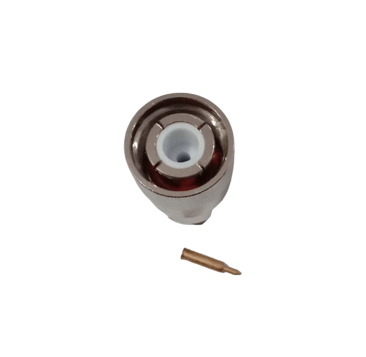 This HN male coaxial connector is designed for quick and reliable termination of RG 59 coaxial cable. It uses a clamp-on termination, which simplifies the installation process by eliminating the need for soldering or specialized crimping tools. This method provides a strong mechanical grip on the cable’s jacket and outer conductor, ensuring a secure and stable electrical ground. It is a highly convenient option for field technicians who need to create durable cable assemblies on-site with minimal effort.