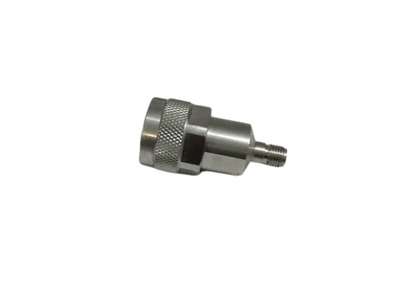 A N-Type Male to SMA Female Adapter for connecting N-Type and SMA devices. It operates up to 18 GHz and is ideal for various RF applications.