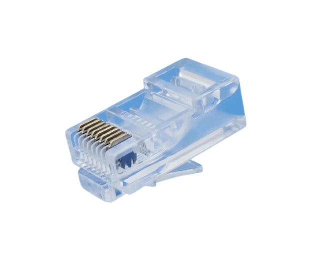 A standard RJ45 Cat6 connector with a plastic body, designed for terminating Cat6 Ethernet cables. It’s a fundamental component for wired networking.