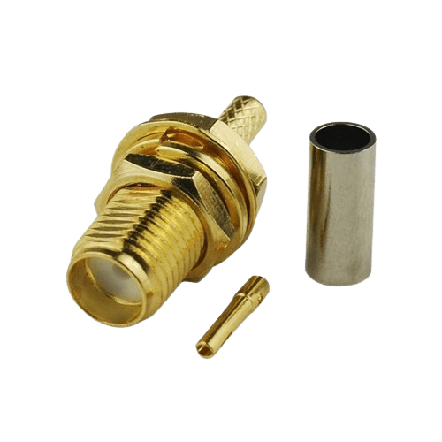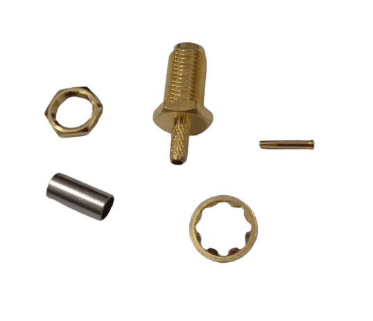 This SMA female bulkhead connector is engineered for secure and permanent mounting on equipment panels or enclosures. It is specifically designed to work with LMR100 coaxial cable. The crimp-style termination provides a fast, secure, and permanent electrical and mechanical bond to the cable. Crimp connections are known for their reliability and durability, making them an excellent choice for a wide range of professional applications, including telecommunications, test equipment, and industrial systems where a dependable connection is crucial.