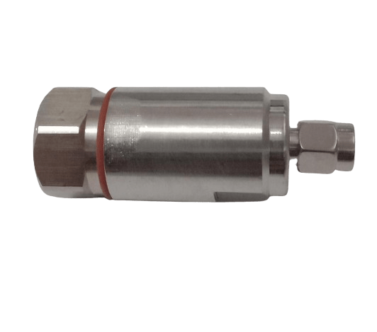 This SMA male coaxial connector is engineered for the fast and reliable termination of 1/2-inch SF (Super Flexible) coaxial cable. The clamp-on termination simplifies the installation process, making it a highly convenient option for technicians working in the field. By eliminating the need for soldering, it reduces assembly time and the reliance on additional tools. The connector’s design provides a strong mechanical grip on the cable jacket and outer conductor, ensuring a secure and stable electrical ground. It’s a professional-grade component used in a variety of wireless communication applications where flexibility and ease of installation are key considerations.