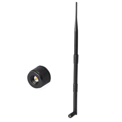 A high-gain whip antenna with reverse polarity for 2.4 GHz Wi-Fi. It has a 9 dBi gain and is ideal for extending signal range.